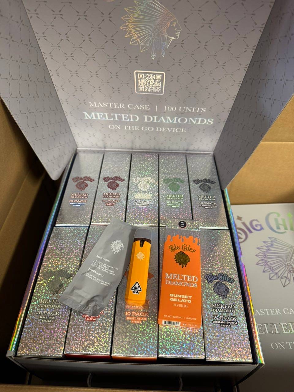 Experience the pure power of cannabis with the Big Chief 2g Liquid Diamonds Disposable Vape—a premium, high-capacity vaporizer filled with THC diamonds in liquified form. This cartridge combines potency with flavor by fusing 99% THC crystalline extract and strain-specific live terpenes, delivering a clean, strong high with a terpene-rich aroma and smooth pull.